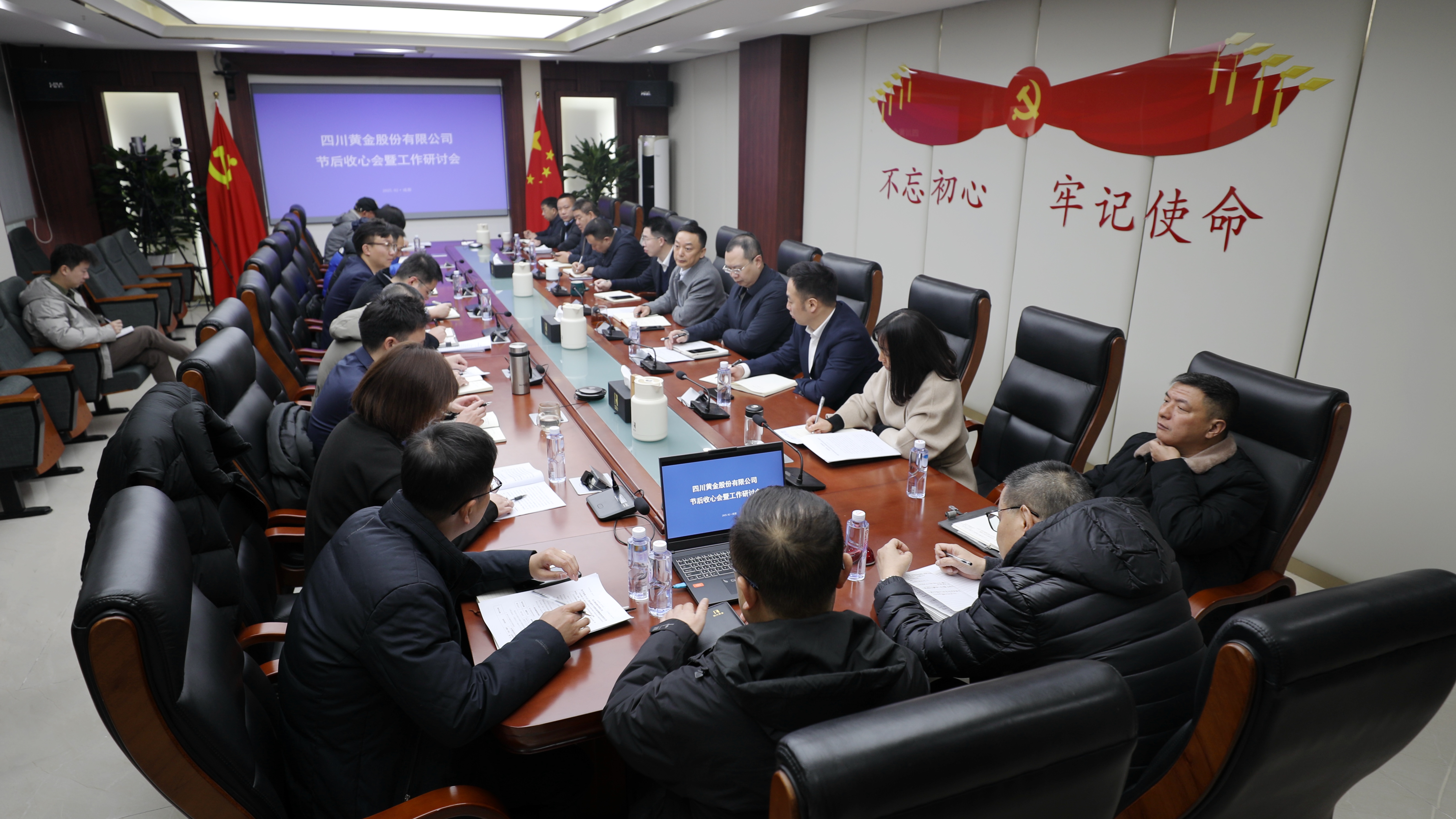 会上,公司经营层领导、各部门及梭罗沟金矿负责人依次就公司2024年度工作报告和2025年工作计划进行深入研讨,并重点围绕生产效能提升、管理体系优化、安全环保、人才梯队建设等关键领域提出建设性意见和建议,为公司高质量发展积极出谋划策。 公司党委副书记、副董事长、总经理吴安东在听取汇报后,对各项工作逐一进行了点评与指导,并提出六点要求:一是全力以赴抓生产,企业发展攀新高;二是求真务实抓管理,降本增效促发展;三是持之以恒抓安全,保障和谐稳定发展;四是尽心竭力抓人才,打造高素质团队;五是求新求变抓创新,提高新质生产力;六是坚定不移抓党建,营造良好政治生态。 此次会议既是统一思想、调整状态的收心会,也是锚定目标、鼓足干劲的动员会。公司全体员工将迅速行动起来,以饱满的精神、昂扬的状态、实干的作风,抓好各项重点工作,精准发力夺取“开门红”,以“开门红”引领“全年红”。 公司经营层、各部门及梭罗沟金矿负责人参加此次会议。